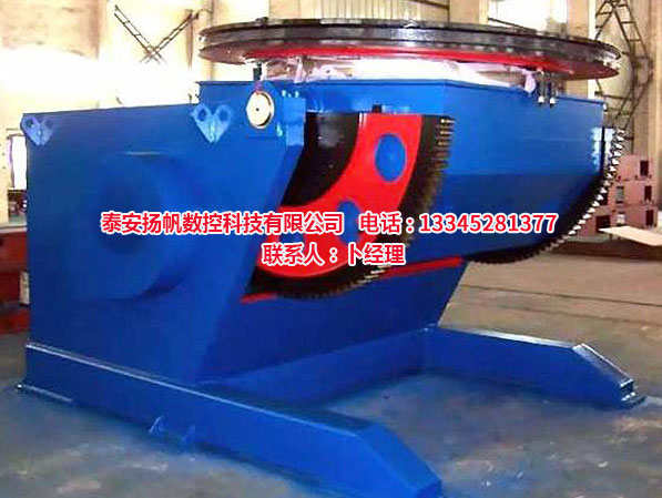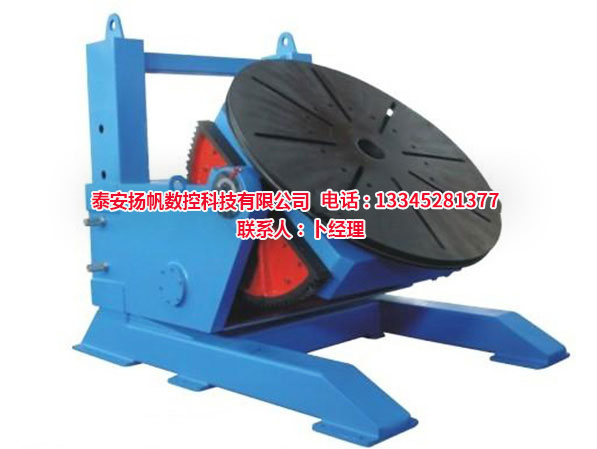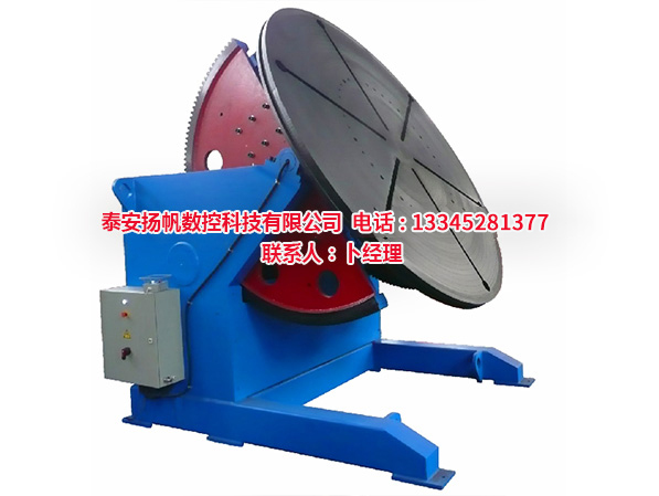 焊接變位機(jī)一般由工作臺(tái)回轉(zhuǎn)機(jī)構(gòu)和翻轉(zhuǎn)機(jī)構(gòu)組成,變位機(jī)通過工作臺(tái)的升降,翻轉(zhuǎn)和回轉(zhuǎn)使固定在工作臺(tái)上的工件達(dá)到所需的焊接,裝配角度,變位機(jī)工作臺(tái)回轉(zhuǎn)為變頻無級(jí)調(diào)速,可得到滿意的焊接速度