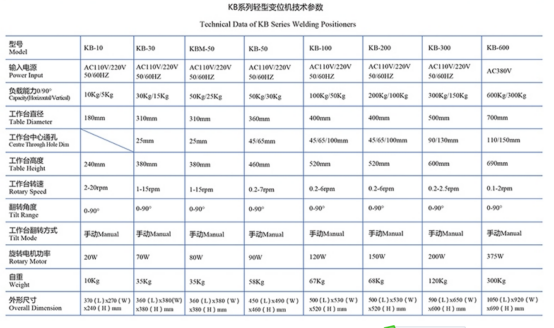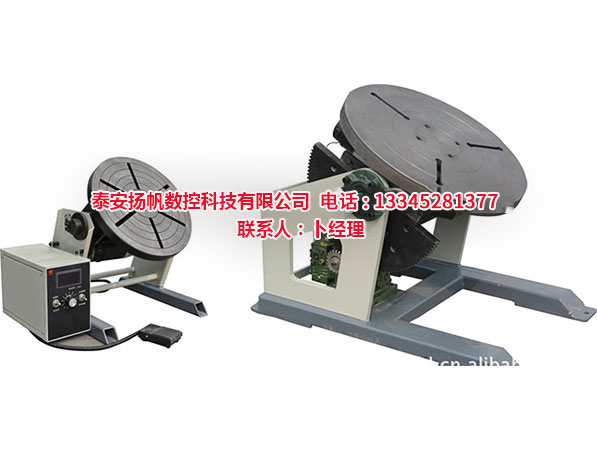 焊接變位機(jī)一般由工作臺(tái)回轉(zhuǎn)機(jī)構(gòu)和翻轉(zhuǎn)機(jī)構(gòu)組成,變位機(jī)通過工作臺(tái)的升降,翻轉(zhuǎn)和回轉(zhuǎn)使固定在工作臺(tái)上的工件達(dá)到所需的焊接,裝配角度,變位機(jī)工作臺(tái)回轉(zhuǎn)為變頻無級(jí)調(diào)速,可得到滿意的焊接速度